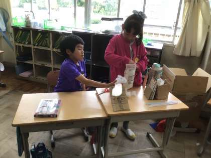 生活科で夏祭りを開催しました。準備も自分たちで行いました。
