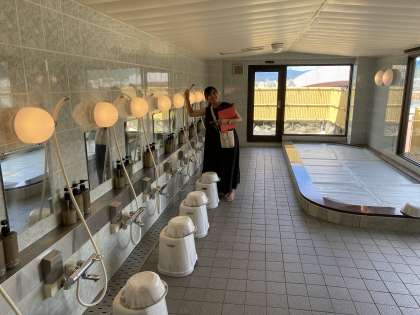 班別行動の再集合場所は宿になっています。広いお風呂で気持ちよさそうです。