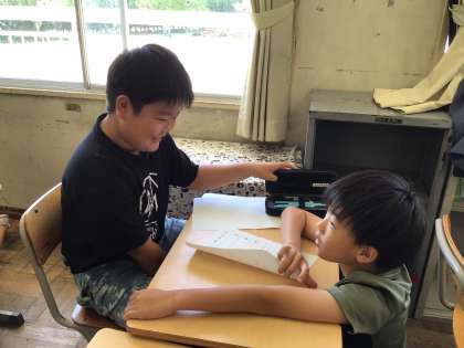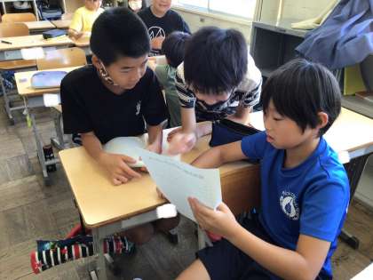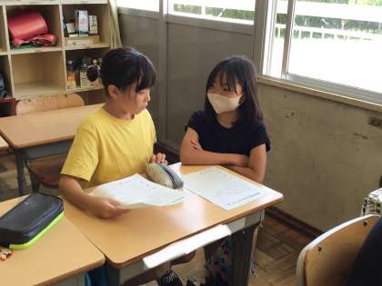 夏休みの思い出についてクイズを作り、ペアで話して楽しみました。