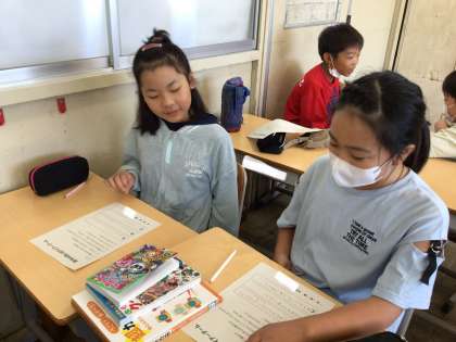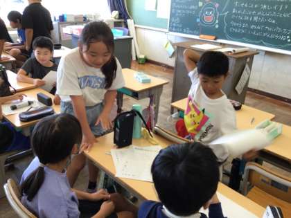 夏休みの思い出についてクイズを作り、ペアで話して楽しみました。