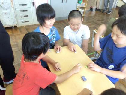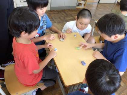 7・8・9・10組 みんな仲良し 公開日 2023/09/05 更新日 2023/09/05 各学年から この日も屋外の気温が高く 休み時間は室内で遊ぶことになりました。 男の子たちが集まって 消しバトをして盛り上がっていました。 みんな仲良しです。