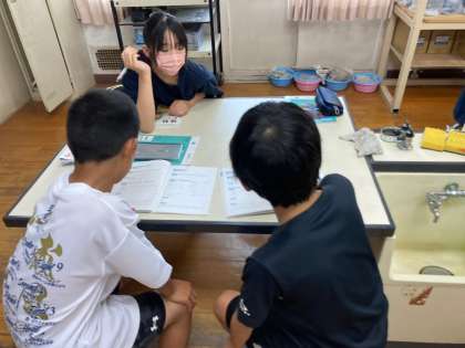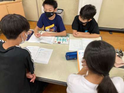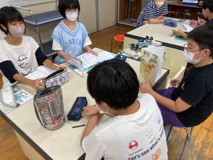 班で話し合った内容を、他の班の子と交流します。