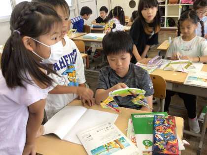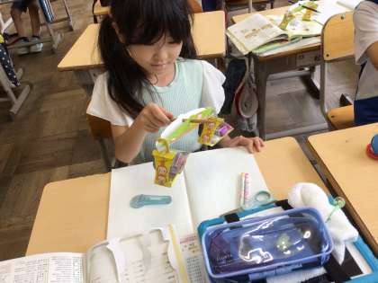 てんびんを使って重さ比べをしました。
