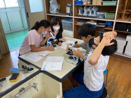 顕微鏡でアサガオとユリの花粉を観察しました。