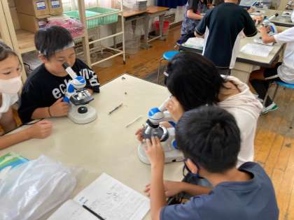 顕微鏡でアサガオやユリの花粉を観察しました。