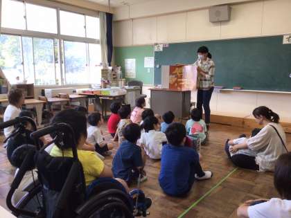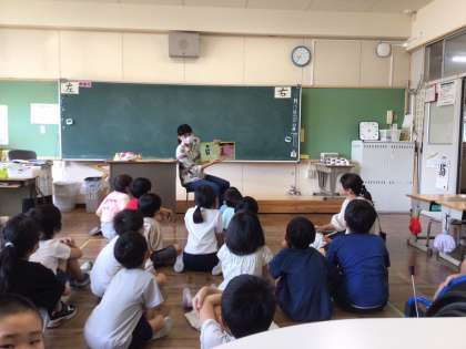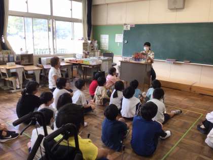 7・8・9・10組 楽しいお話にみんな笑顔にー読み聞かせー 公開日 2023/09/15 更新日 2023/09/15 各学年から 読み聞かせボランティアの方に 楽しい本を読んでいただきました。 今回読んでいただいたのは 「かがみのまほう」 「どうぞのいす」 「うしはどこでも『モー』」 の3冊です。 どの本も楽しいお話で 子どもたちも思わず笑顔に。 担任もほっこりした気持ちに。 素敵な時間を過ごすことができました。