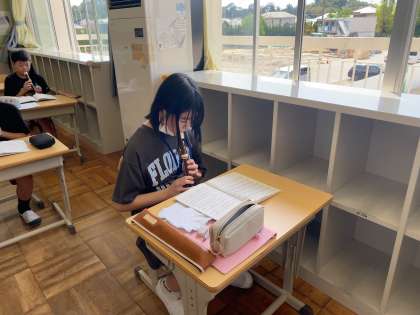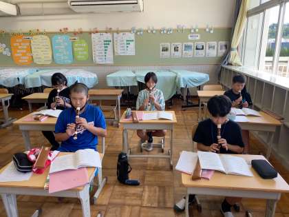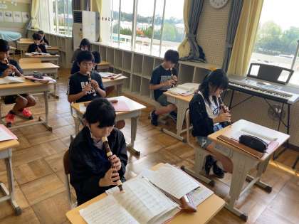 授業のはじめに毎時間リコーダーの練習をしています。徐々に上達していることがよく分かります。