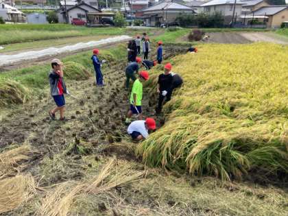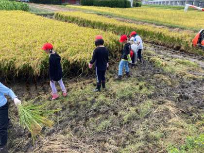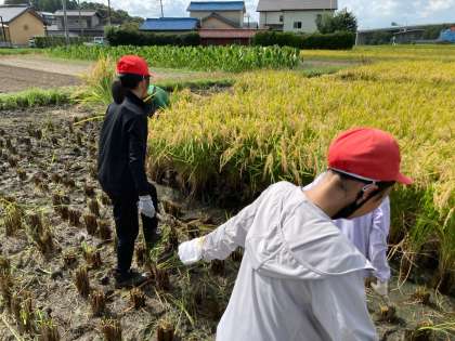 5年さわやか 稲刈り 公開日 2023/09/19 更新日 2023/09/19 各学年から いよいよ稲刈りです。 5月に田植え(手植え)したものを刈りました。暑い中の作業だったので、当初よりも短く15分で作業を終えました。 初めは刈り方がわからず、悪戦苦闘していましたが、だんだんコツを掴んで上手に刈ることができるようになってきました。初めから上手な子もいて、スムーズに作業が進みました。 Nファミにも1名ボランティアとして参加していただきました。ありがとうございました。