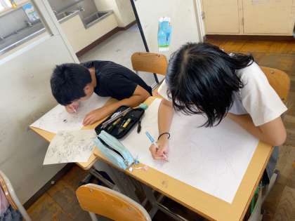 自分の伝えたい場面が分かるように構図を工夫しながら下書きをしています。