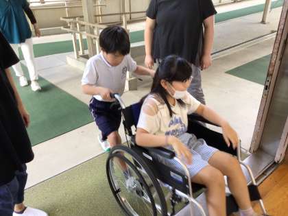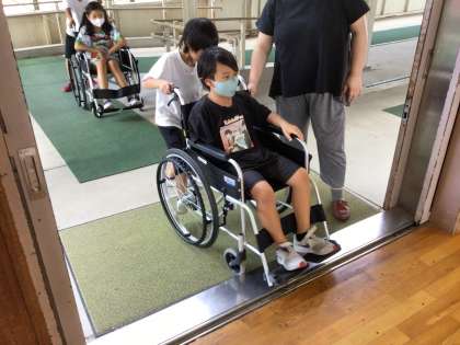 3年生 車いす体験 公開日 2023/09/19 更新日 2023/09/19 各学年から 体験では、実際に車いすに乗る側、押す側をそれぞれ体験しました。普段は何とも感じない少しの段差や傾斜も車いすの人にとっては大きな障害であることを実感しました。