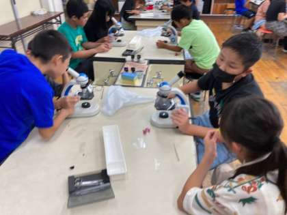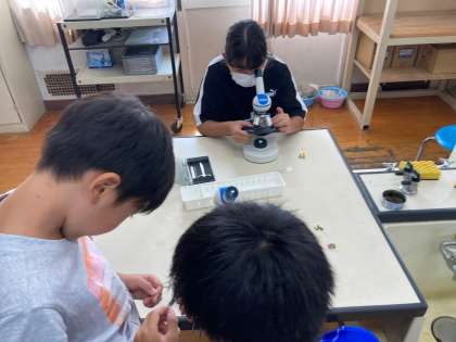 顕微鏡を使って、いろいろな花粉を観察しました。