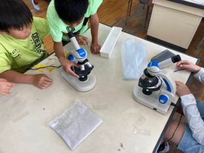 顕微鏡を使って、いろいろな花の花粉を観察しました。