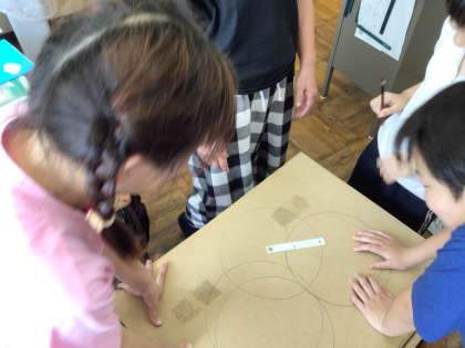 7・8・9・10組 算数で円の勉強をしたよ! 公開日 2023/09/22 更新日 2023/09/22 各学年から 算数の学習で円の特徴やかき方を学習をしました。 教科書の付録についている紙のコマを回したり 円をかく器具を使って円をかいたりしました。 この活動を通して 円には中心があることや 中心から円の線はどこも同じ長さになっていることに 気づくことができました。