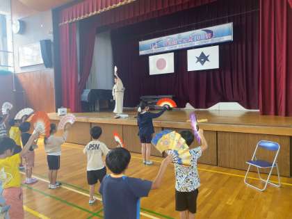 日本舞踊の講師の方を招いての授業が2年生向けに行われました。そこで、長年日本舞踊を習っている6年生の児童に、講師の方と一緒にサポートをしてほしいという依頼があり、急遽一緒に参加することになりました。講師の方と一緒に見本の踊りを踊ったり、扇子の使い方を一人一人に教えてあげたりと、最高学年として下級生を大切にする優しい姿も見ることができました。お願いされて、すぐに「いいですよ」と言えるその前向きな姿勢を、私たち大人も見習いたいものです。