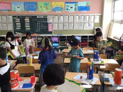 図工で鑑賞会を行いました。友達の良いところを見つけました。