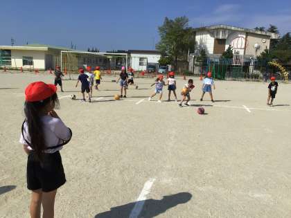体育でサッカーの練習を行いました。まっすぐけるのが難しそうです。
