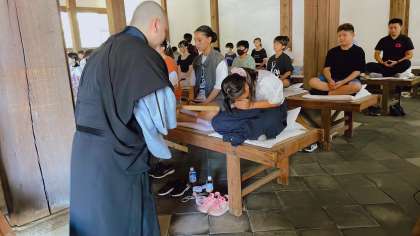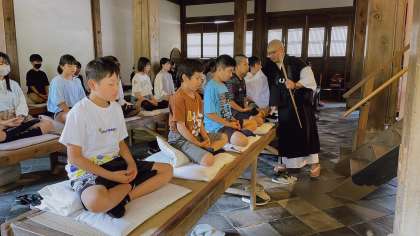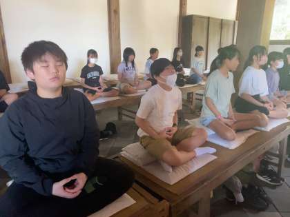 心を落ち着かせて、座禅体験をしています。