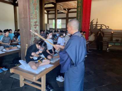 心を落ち着かせて、座禅体験をしています。
