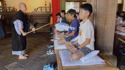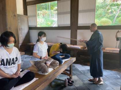 心を落ち着かせて、座禅体験をしています。