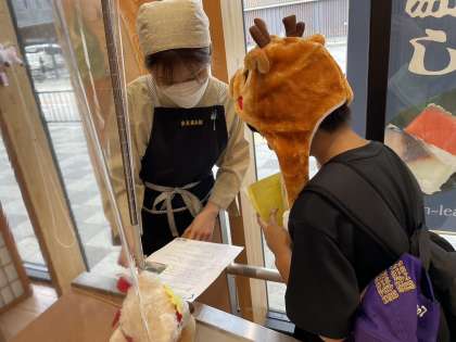 奈良でもPR活動を行いました。作ったチラシやパンフレットを見せながら、上手にPRしていました。