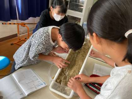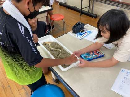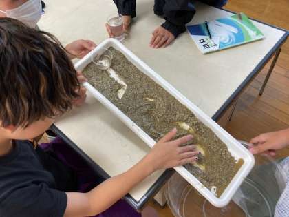 流れる水のはたらきを、実験を通して確かめました。