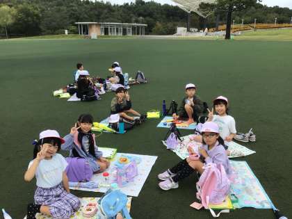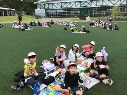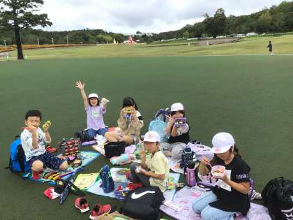 雨が無事上がり、外の芝生でお弁当を食べることができました。
