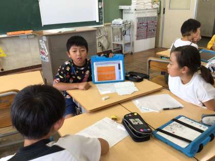 ごみについてまとめたスライドを分かりやすく改良し、グループで発表しました。
