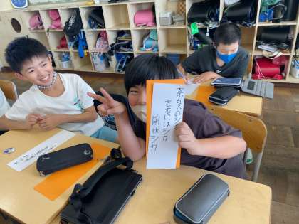 一行詩大会に向けて、修学旅行での思い出を五・七・五にしました。