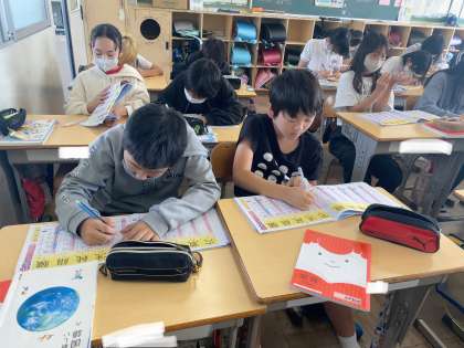 修学旅行から気持ちを切り替えて、新出漢字の学習をしました。
