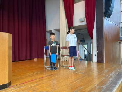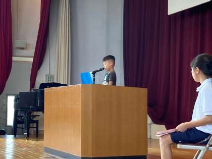 前後期の節目の全校集会が開かれました。 学年を代表して、意見発表をしました。