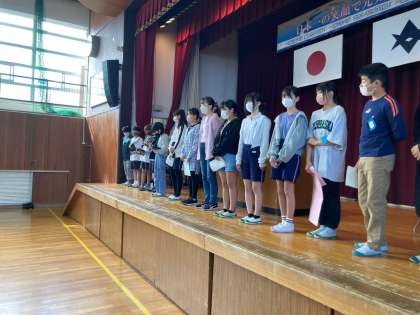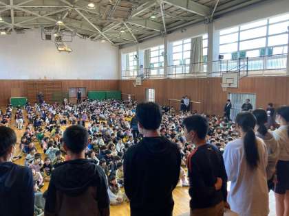 切り替えの式 公開日 2023/10/10 更新日 2023/10/10 各学年から 前後期の節目の全校集会が開かれました。 間近に迫ったふれあいフェスティバルに向けて、各サークルのサークル長が情宣しました。