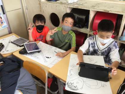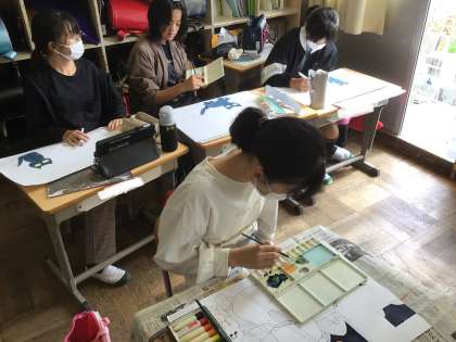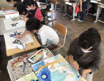 「どんぐりと山猫」「セロ弾きのゴーシュ」「雪わたり」の中から選び、読書感想画を描いています。