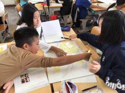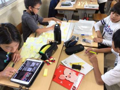 思いつく「和の文化」をグループでたくさん出し合い、仲間分けしました。