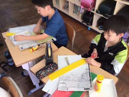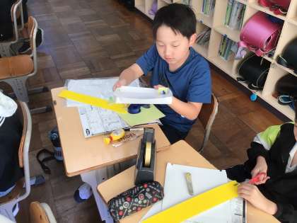 4年生の図工「コロコロガーレ」の製作の様子です。