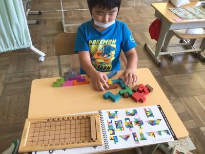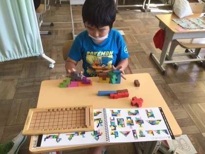 7・8・9・10組 得意を生かしながらー生活単元ー 公開日 2023/10/22 更新日 2023/10/22 各学年から 1年生の生活単元の学習の様子です。 生活単元の学習では、 一人一人の興味や関心に合わせ 日常生活を送る上で必要な力を 様々な経験を通して身につけていきます。 今回の学習では 木製のパズルで例として紹介されている形を作る活動に取り組んでいます。 算数や図工の要素を取り入れた活動で 思考する楽しさや課題を解決する楽しさを味わったり 集中力を養ったしています。