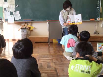 大型絵本なのでお面をはずす仕掛けに子どもたちも大喜びでした。