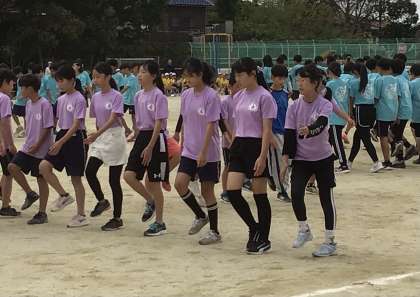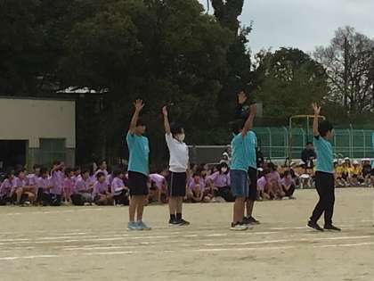 7・8・9・10組 高学年の誇りをかけてーNスポ予行練習高学年ー 公開日 2023/11/09 更新日 2023/11/09 各学年から 高学年の表現の演技の様子です。 音楽に合わせた集団行動で 隊形変化の妙を披露します。 列が交差したり、向きを変えたりと 難しい動きがありますが 高学年らしい演技を見せられるようにと 特別支援学級の子どもたちも がんばってれんしゅうしてきました。 真剣な子ども達の姿に刮目です。