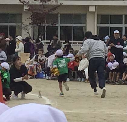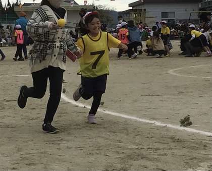 7・8・9・10組 親子で楽しくー低学年手つなぎリレーー 公開日 2023/11/12 更新日 2023/11/12 各学年から 低学年の手つなぎリレーは 子供たちの手作りラケットを使って 親子で手をつないでボールをリレーしました。 お父さんやお母さんと一緒に競技ができるということで 子どもたちの顔も思わず笑顔に。