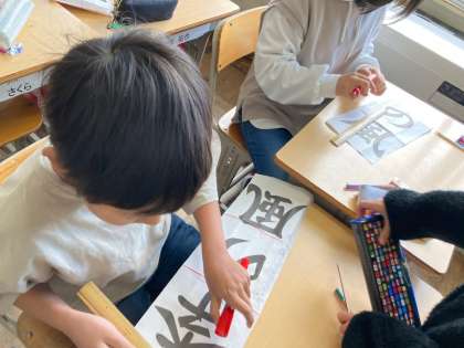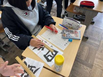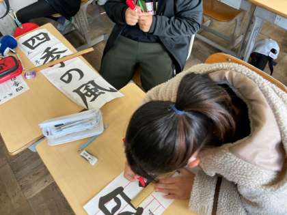 書き初めの見本に線を引きました。今年の書き初めの字は「四季の風」です。