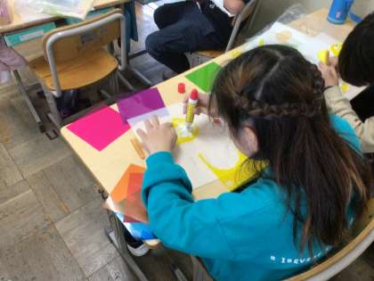 7・8・9・10組 どんな工夫をしようかな?ー4年図工ー 公開日 2023/11/21 更新日 2023/11/21 各学年から 4年の図工で取り組んでいる「光の差し込む絵」 この時間は、自分の考えた工夫を グループの仲間と紹介し合い、 良いと思った工夫を取り入れて 自分自身の作品をさらに良いものにする活動に取り組みました。 話し合いの後、 早速友達のアイデアを取り入れて作品作りに活かしている子も。 完成がとても楽しみです。