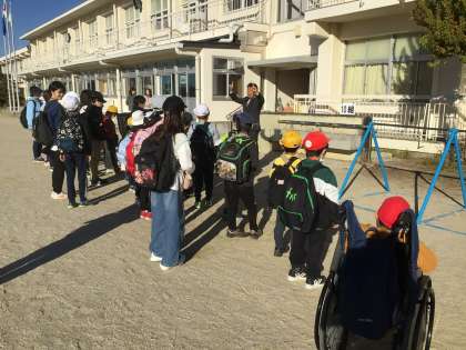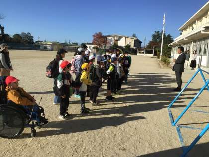 校長先生に出発の挨拶をして