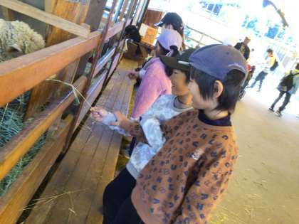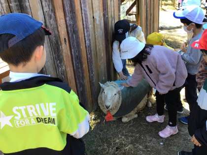 7・8・9・10組 お楽しみ遠足(その6) ヒツジやヤギにおっかなびっくり!でも慣れたら平気だよ!