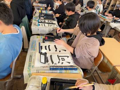 書き初めの練習が始まりました。文字のバランスに気をつけて練習しました。