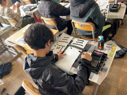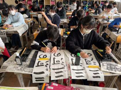 書き初めの練習が始まりました。文字のバランスに気をつけて練習しました。