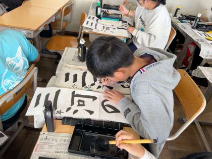 書き初めの練習が始まりました。文字のバランスに気をつけて練習しました。