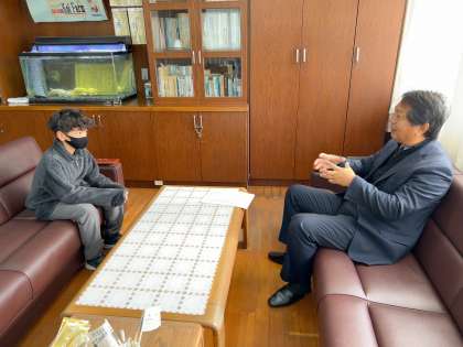 明日、愛・地球博記念公園で開催される第16回愛知県市町村対抗駅伝競走大会に、本校の6年生の児童が豊田市の小学生の代表として出場します。今日は校長室に訪れ、校長先生に大会への意気込みを伝えました。