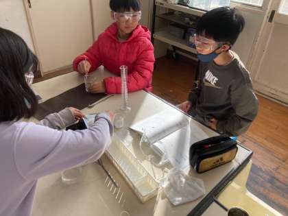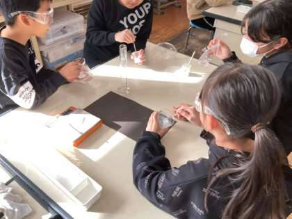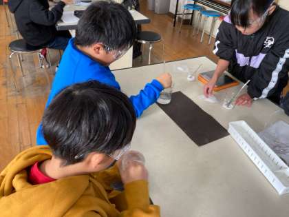 水溶液の水の量を増やすともののとける量が増えるかを、実験して確かめました。