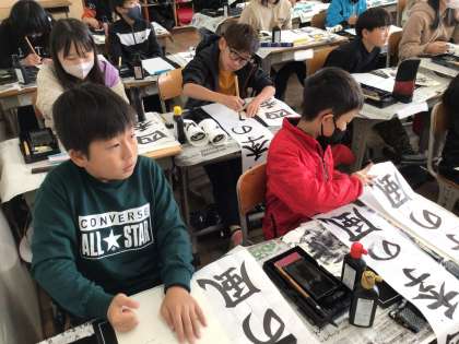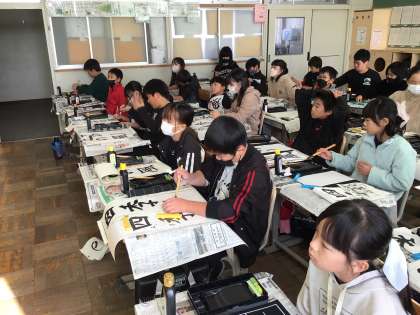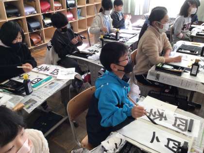 書き初め大会に向けて、書くときのコツを羽根田先生に教えていただきました。