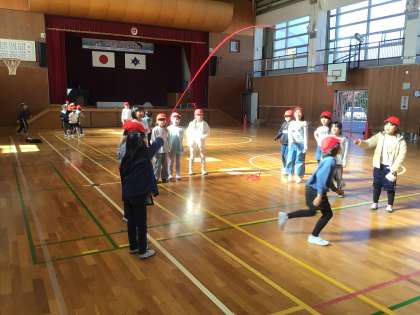 楽しく一斉跳びと8の字跳びができました。