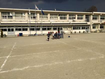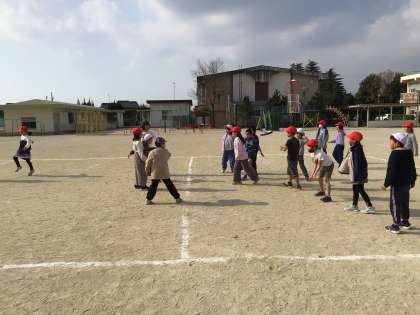 お別れ会の様子です。フリスビードッジとだるまさんが転んだをしました。